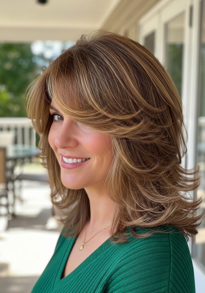 Layered shoulder-length hair is one of the most versatile hairstyles for women who want both volume and manageability. The length provides enough weight to maintain a smooth shape while the layers create movement and fullness. This haircut works especially well for women with fine or medium hair textures because it prevents the hair from appearing flat. Soft waves or light curls enhance the layered structure beautifully. Shoulder-length layered hair is easy to style, making it perfect for busy lifestyles. It offers a polished yet relaxed appearance suitable for work, social events, and everyday beauty.
