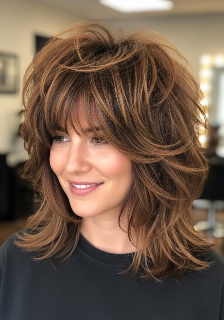 The layered shag haircut is a stylish and textured hairstyle designed to maximize volume and movement. This cut features shorter layers near the crown combined with longer layers toward the ends. The result is a relaxed, slightly tousled appearance that feels youthful and energetic. Layered shags work beautifully with natural waves or curls because the layers enhance the hair’s natural texture. Styling with a light texturizing spray can emphasize the layers even more. This hairstyle offers a bold yet wearable look that has become extremely popular in modern hair trends.