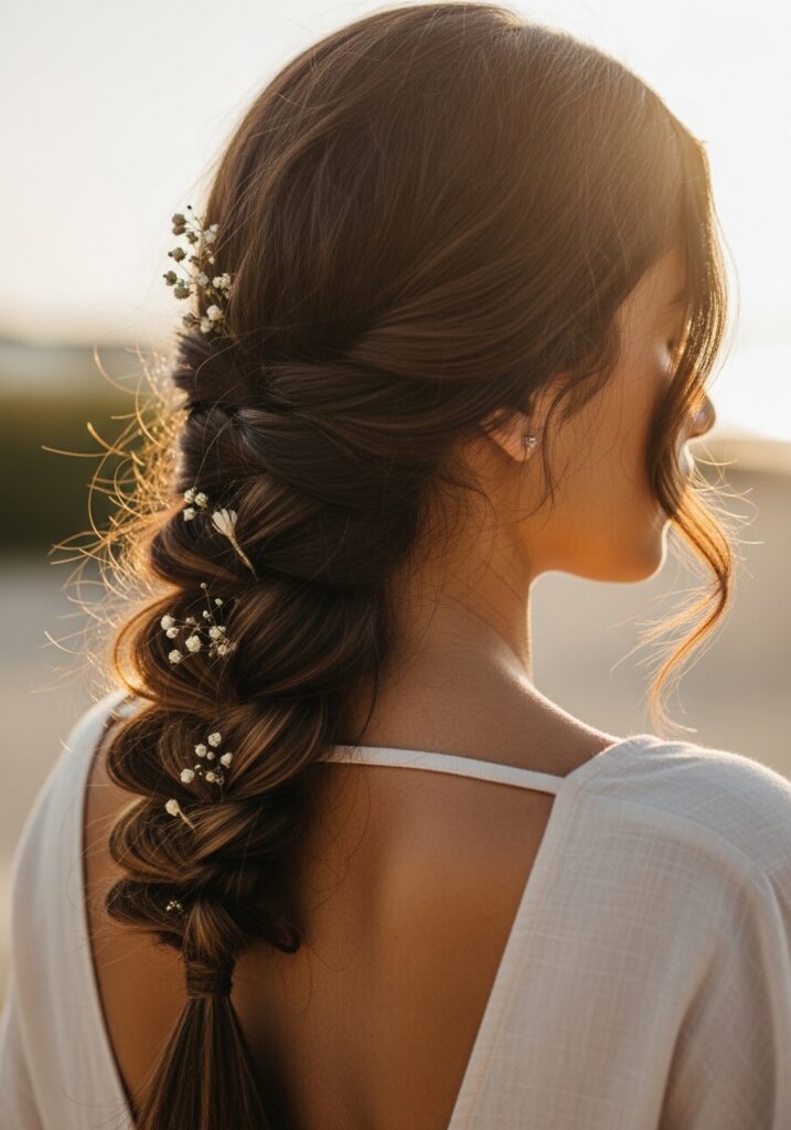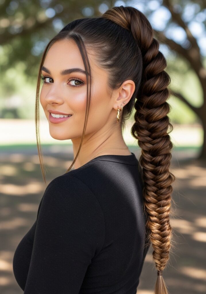 The braided ponytail combines the simplicity of a ponytail with the beauty of a braid, making it a perfect hairstyle for busy mornings. Start by tying your hair into a regular ponytail, then braid the length and secure it with a small elastic. This style keeps your hair controlled while adding texture and visual interest. It works particularly well for long hair and stays neat throughout the day. The braided ponytail is great for work, school, workouts, or travel days when you need a hairstyle that is both functional and stylish without requiring much effort.