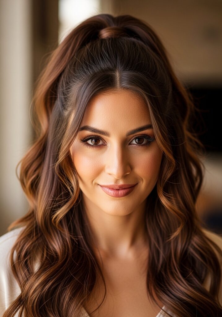 The half ponytail combines practicality with style, making it perfect for quick morning routines. Gather the top section of your hair and secure it with an elastic while leaving the rest of your hair loose. This hairstyle keeps hair away from your face while still showing off length and volume. It works beautifully for straight or wavy hair and can easily be enhanced with soft curls. The half ponytail is both youthful and versatile, making it a popular hairstyle choice for busy schedules.