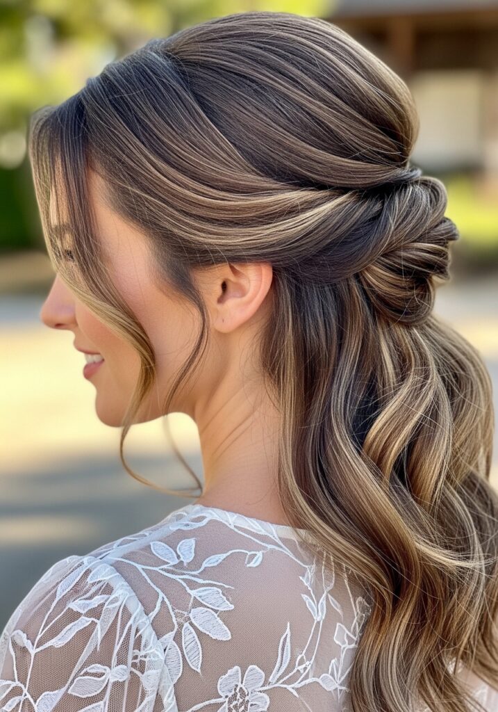 The twisted half up hairstyle is perfect when you want something quick yet elegant. Take two sections from each side of your head, twist them gently, and secure them together at the back. This hairstyle keeps hair away from your face while maintaining a soft romantic look. It works beautifully with natural waves or curls and can be styled in just a few minutes. The twisted half up style is ideal for casual outings, workdays, or even simple date nights.