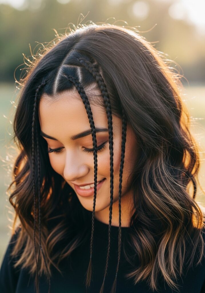 Mini front braids are a trendy hairstyle that adds personality and detail without requiring much time. Take two small sections of hair from the front of your head and braid them toward the back before securing with tiny elastics or clips. The rest of your hair can remain loose and natural. This hairstyle works especially well with wavy or textured hair and creates a youthful, playful appearance. It’s ideal for busy mornings because it takes only a few minutes but instantly elevates your hairstyle. Mini braids are also popular on Pinterest and social media fashion trends.