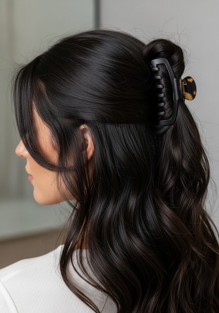 The claw clip twist has become one of the most popular easy hairstyles for busy mornings because it looks effortlessly chic while taking less than a minute to style. Simply gather your hair at the back of your head, twist it upward, and secure it with a stylish claw clip. This hairstyle works beautifully for medium and long hair while adding instant volume and texture. Loose strands around the face create a relaxed and trendy look that feels modern and comfortable. Claw clips also prevent hair breakage compared to tight elastics, making this hairstyle both fashionable and practical for everyday routines.