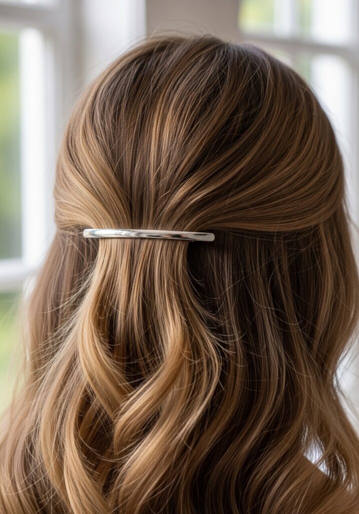 Hair clips are an easy way to add style to your hair without complicated techniques. Simply twist or pull back a section of hair and secure it with a decorative clip. This hairstyle takes less than a minute yet instantly looks fashionable and trendy. Clips with pearls, gold accents, or minimal designs are especially popular on Pinterest. The hair clip style works well for medium and long hair and can easily complement both casual and professional outfits.