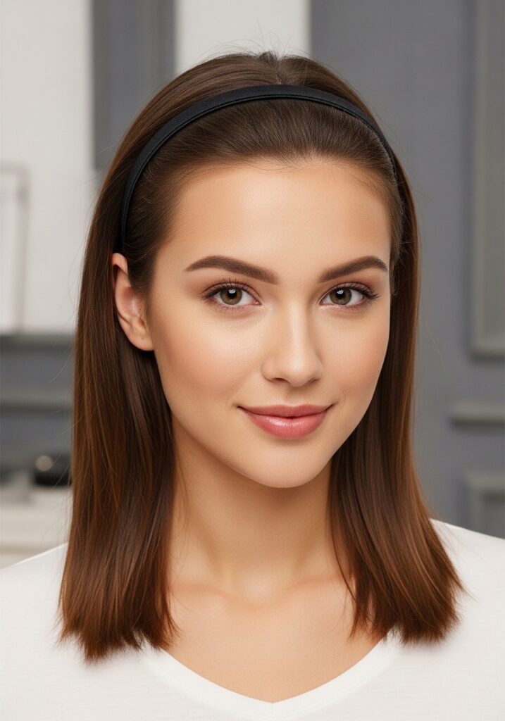 A headband hairstyle is one of the fastest ways to style your hair on a busy morning. Simply brush your hair and place a stylish headband near the crown of your head to keep strands away from your face. This hairstyle works with straight, wavy, or curly hair and instantly adds a fashionable touch to your overall appearance. Headbands are available in many styles such as fabric, pearl, or padded designs, allowing you to match them with your outfit. It’s a practical hairstyle that requires no heat tools, making it perfect for women who prefer quick and healthy styling options.