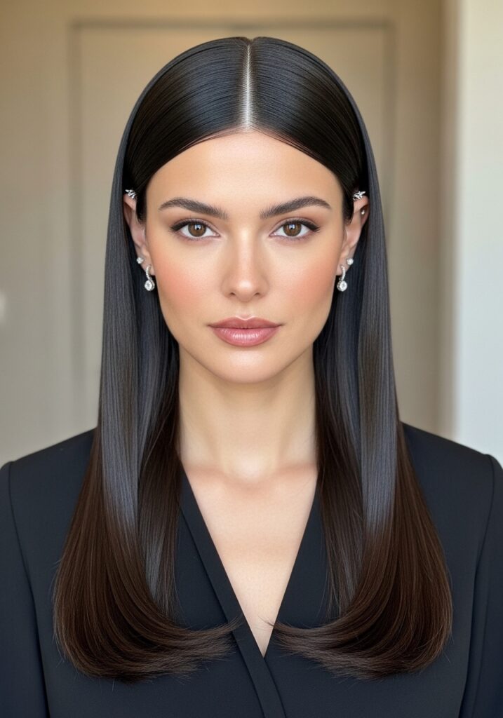 Sometimes the simplest hairstyles make the strongest impression. Sleek straight hair with a clean middle part creates a modern, polished look that takes only minutes to achieve. Use a flat iron quickly through the front sections of your hair and apply a small amount of smoothing serum to eliminate frizz and add shine. This hairstyle is especially effective for professional environments because it looks neat, confident, and sophisticated. It works well with medium or long hair and suits almost every face shape. If you’re rushing in the morning, this quick hairstyle instantly makes you appear put-together without much effort.