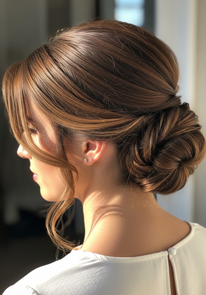 The low twisted bun is a sophisticated hairstyle that works beautifully for professional environments or elegant occasions. To create this look, twist sections of hair together and secure them into a bun at the nape of your neck. This style keeps hair neat while still appearing soft and graceful. It’s especially flattering for long hair because the extra length creates a fuller bun. The low twisted bun pairs well with formal outfits and minimal accessories.