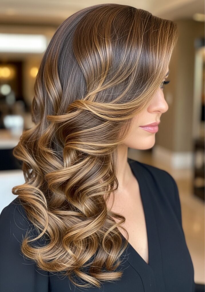 Hollywood glam waves are the definition of timeless elegance. These large, structured waves create a luxurious and polished appearance that works beautifully for formal events. Long hair enhances this hairstyle by allowing the waves to flow smoothly down the shoulders. This classic look is often paired with side parts and shiny finishes to achieve that red-carpet style. Hollywood waves are perfect for weddings, evening parties, or glamorous photoshoots.