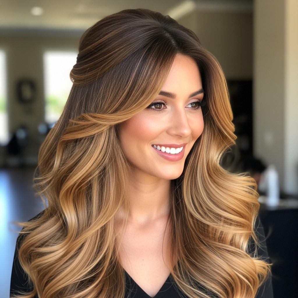 A voluminous blowout hairstyle creates a glamorous and luxurious appearance that enhances the natural fullness of long hair. By using a round brush while blow-drying, you can create lift at the roots and soft curves through the lengths. This hairstyle adds body, shine, and movement, making long hair appear healthy and vibrant. Voluminous blowouts are perfect for special events, date nights, or professional settings where you want a polished and confident look.
