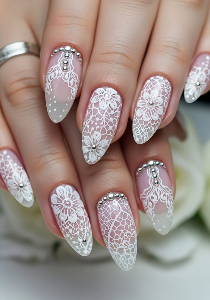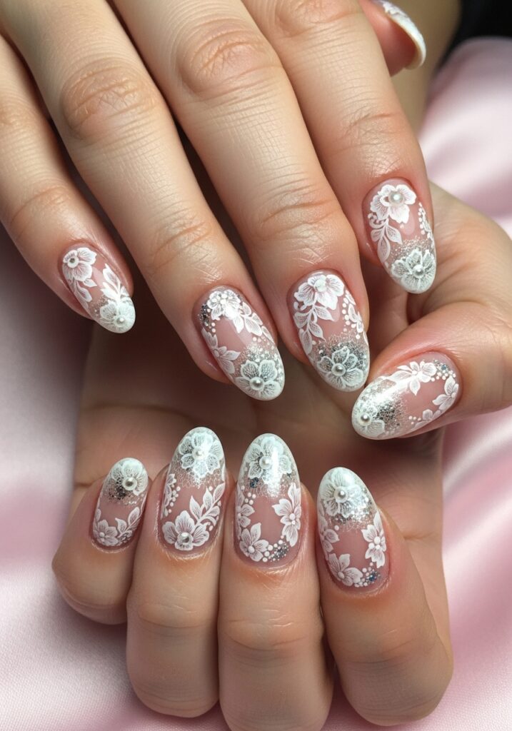 4. Lace Inspired Bridal Nail Art