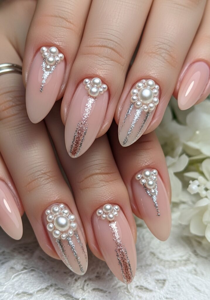 3. Pearl Accent Bridal Nails