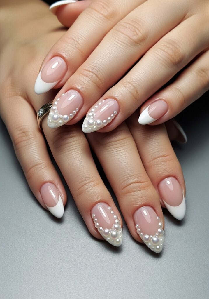 21. Pearl French Tip Nails