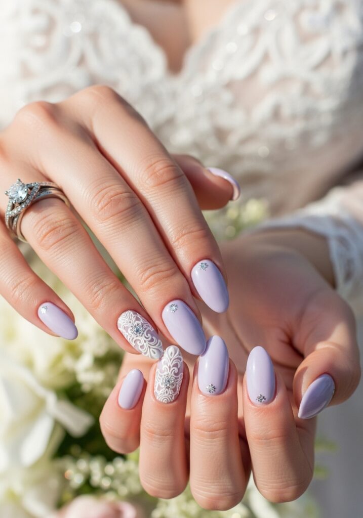 24. Soft Lavender Bridal Nails